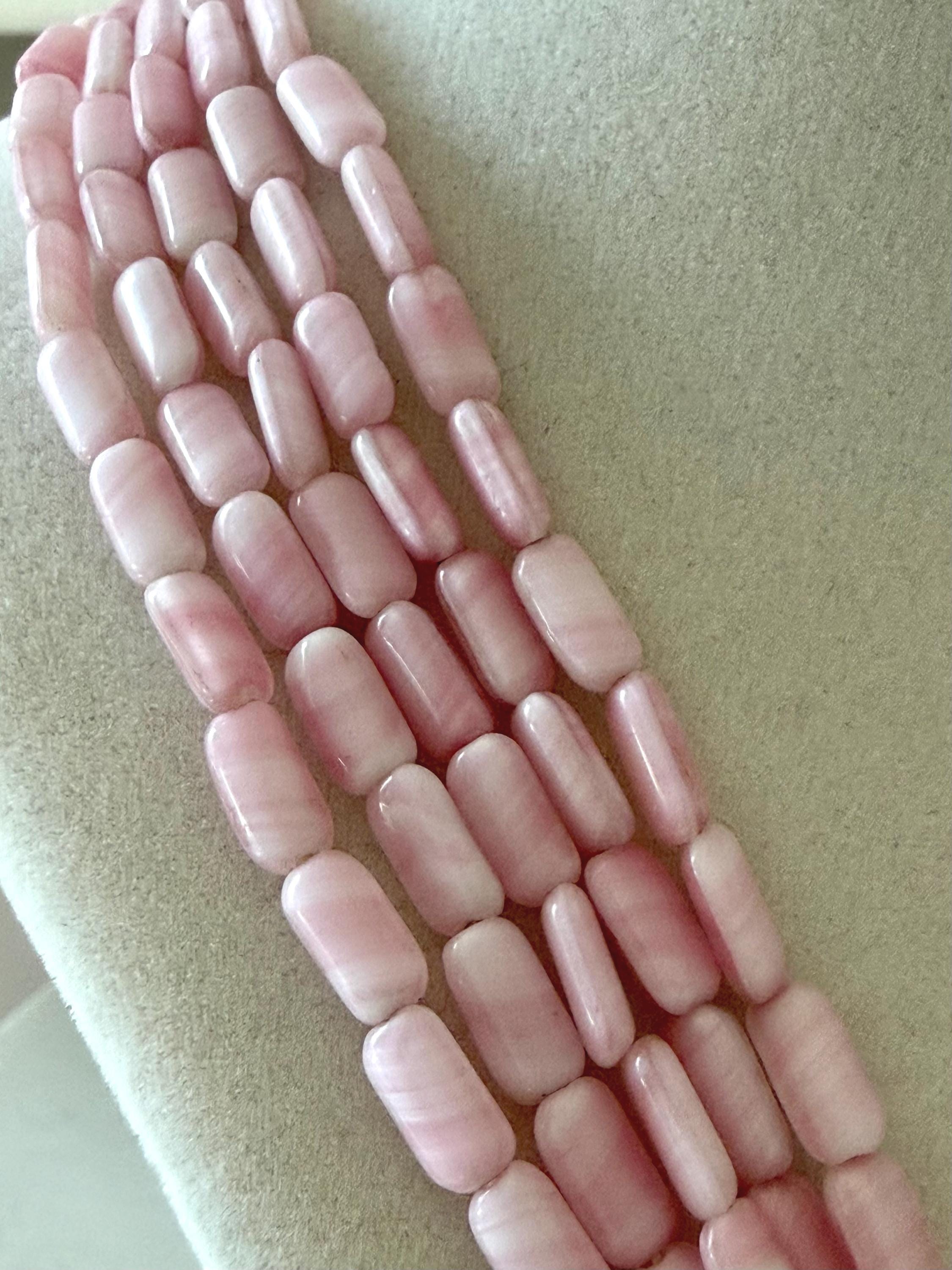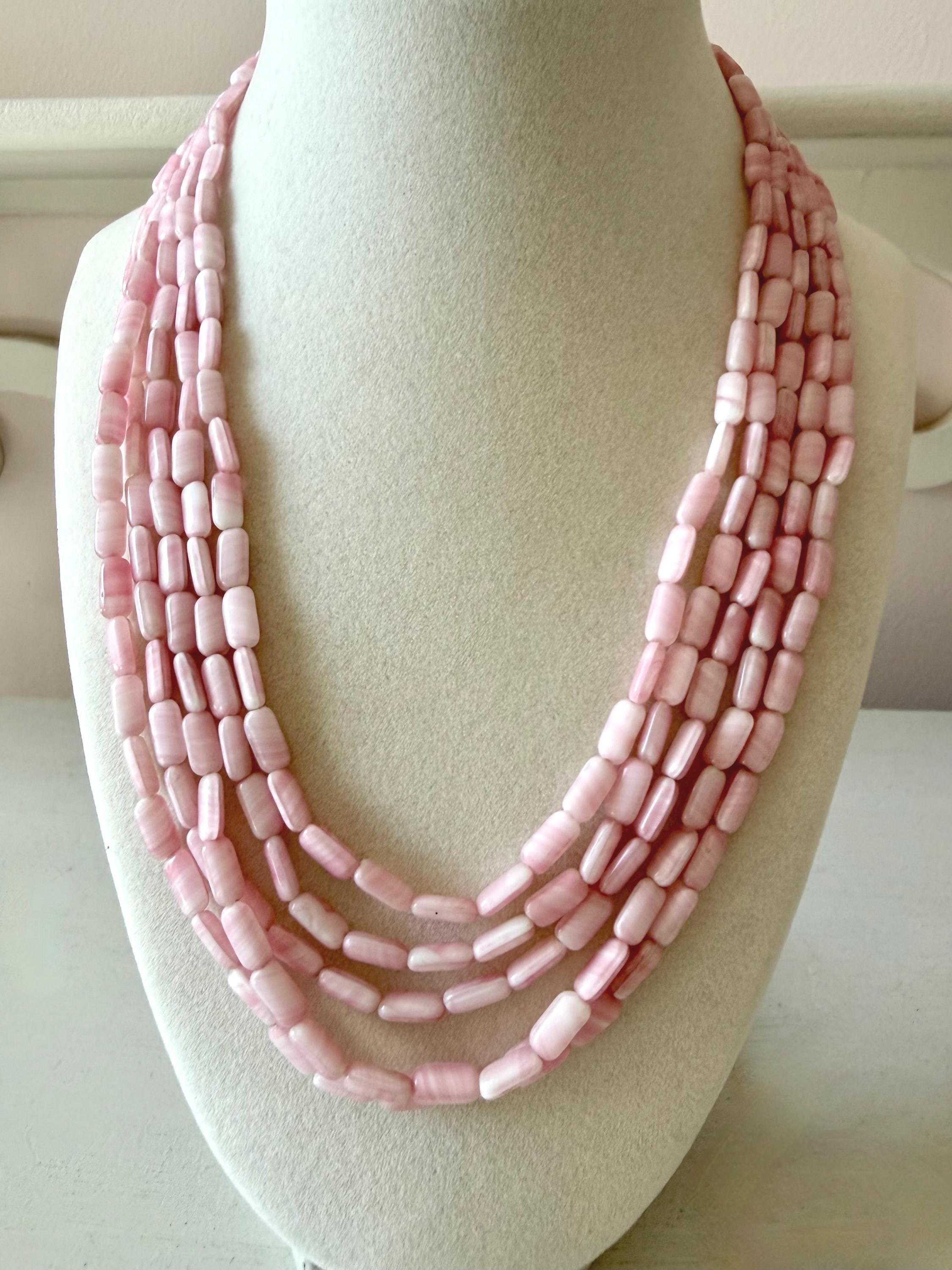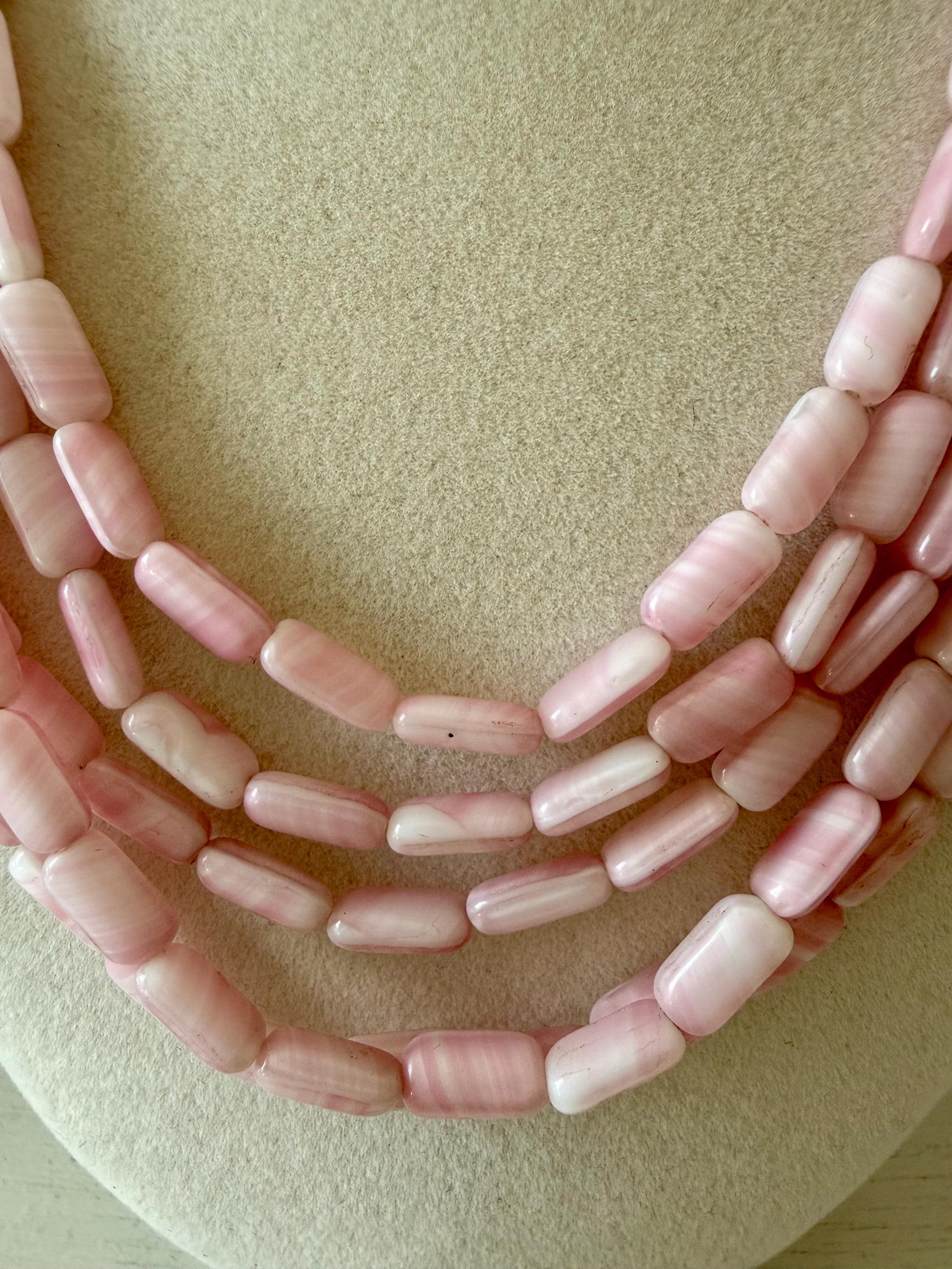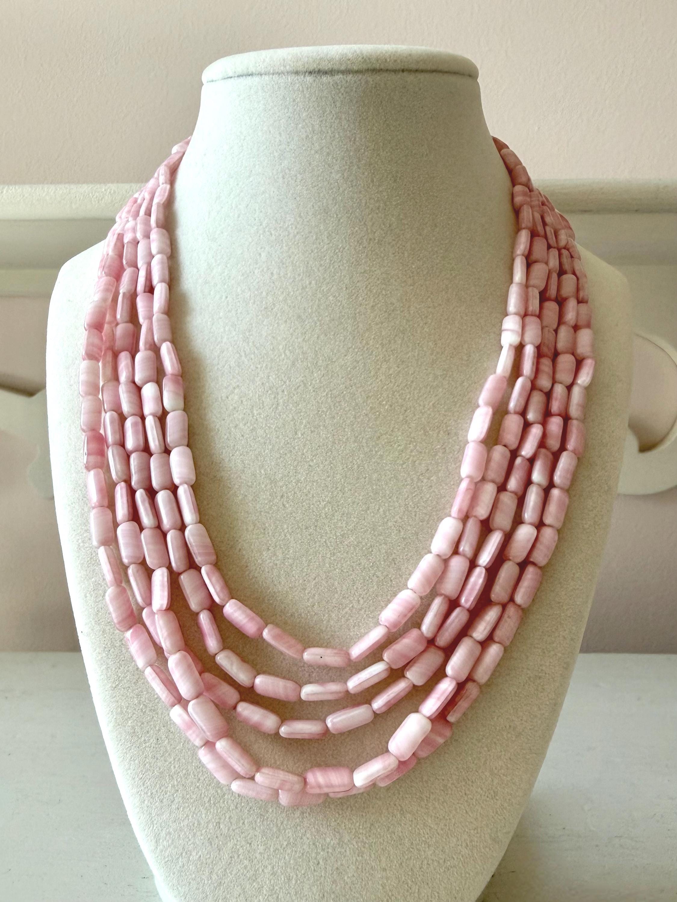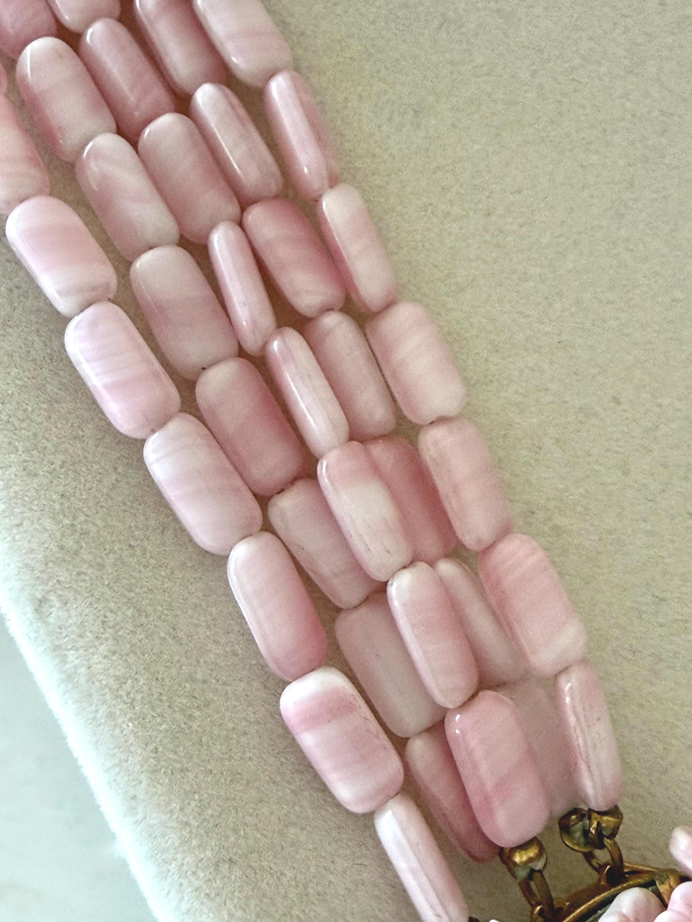 This listing is for a gorgeous vintage necklace by Hattie Carnegie. Measuring 18" in length, the necklace features five strands of beautiful pale pink and white glass beads. But the star of this necklace is the clasp of two large glass rosettes. The clasp is secure and overall, it is in excellent vintage condition. So perfect for spring and summer!